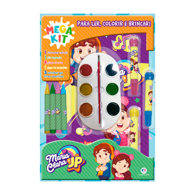 Mega Kit Para Ler, Colorir e Brincar | Maria Clara e JP Prepare-se para a diversão! Com os personagens preferidos da criançada, o Mega Kit promete muitas cores e aventuras. Desfrute de um livro incrível para ler, colorir e brincar, além de gizes de cera e uma paleta de aquarela com seis cores. Também inclui canetinhas com carimbos e um jogo divertido para recortar e brincar! Altura: 36 cm Largura: 24 cm Profundidade: 2,5 cm Páginas: 8