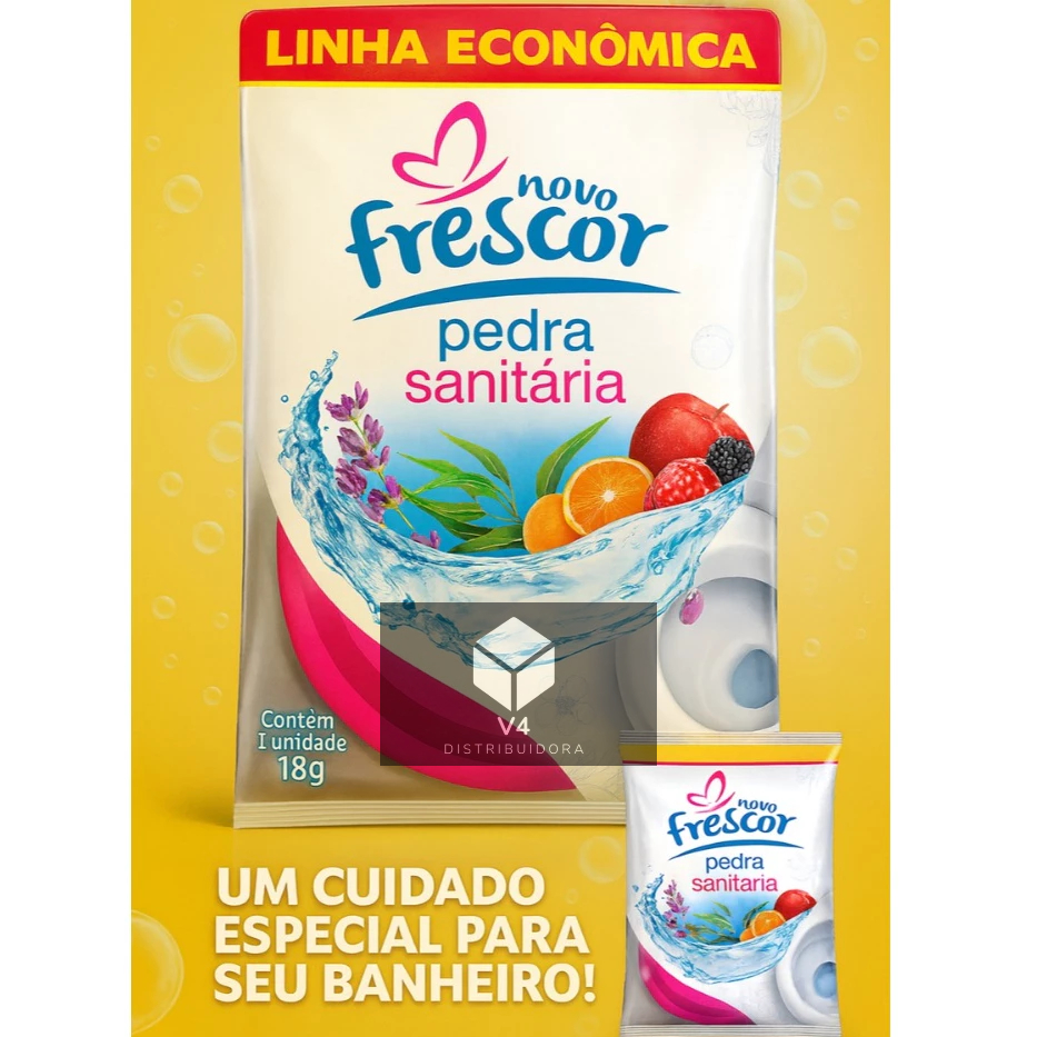 🌸 Pedra Sanitária Novo Frescor 18g – Kit com 12 Unidades Sortidas 💧 Perfume Intenso, Limpeza e Economia Inteligente! Mantenha o seu banheiro sempre limpo, perfumado e com sensação de frescor duradouro com a Pedra Sanitária Novo Frescor. Desenvolvida com ingredientes de alta qualidade, ela garante uma limpeza eficaz, sem manchar o vaso e com fragrâncias envolventes que deixam o ambiente sempre agradável. Diferenciais que fazem da Novo Frescor sua melhor escolha: 🌿 3 Fragrâncias Sortidas: Lavanda, Eucalipto e Tutti-Frutti (ou similares) 💪 Ação Prolongada: Perfuma e limpa por muito mais tempo 🚽 Não Mancha o Vaso Sanitário: Fórmula segura e eficiente 🧴 Combate Bactérias e Maus Odores: Banheiro sempre limpo e agradável 💰 Linha Econômica: Qualidade premium com preço acessível Acompanha Haste Plástica: Fácil de fixar e pronta para usar 📦 Conteúdo do Kit: 12 Pedras Sanitárias Novo Frescor Peso Líquido Unitário: 18g cada Total: 300g de frescor e limpeza 🧼 Modo de Uso: - Retire a pedra da embalagem. - Encaixe na haste plástica inclusa. - Pendure na borda interna do vaso sanitário. - Pronto! Aproveite o frescor contínuo a cada descarga. ⚠️ Informações de Segurança: Leia atentamente o rótulo antes do uso. Mantenha fora do alcance de crianças e animais domésticos. 💙 Novo Frescor – Perfume e qualidade que seu banheiro merece! 🌟 Experimente e sinta a diferença da economia inteligente com fragrância duradoura.