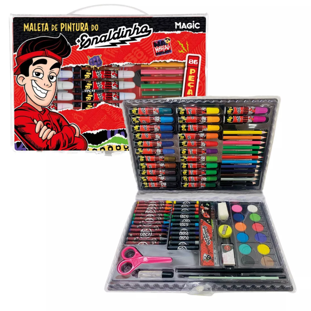 Mega Maleta de Pintura Enaldinho Youtuber com 86 Peças Completa para Colorir Desenhar Criar Artes Estojo Artístico