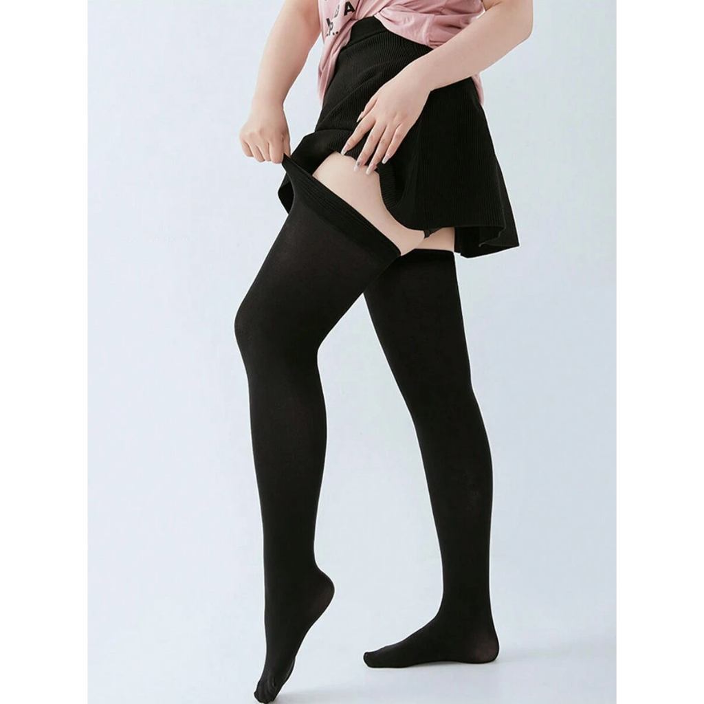 Meia 7/8 Feminina Longa 65 cm Acima do Joelho Over Knee Alta Elasticidade Estilo Coreano Preta ou Branca Fio 100