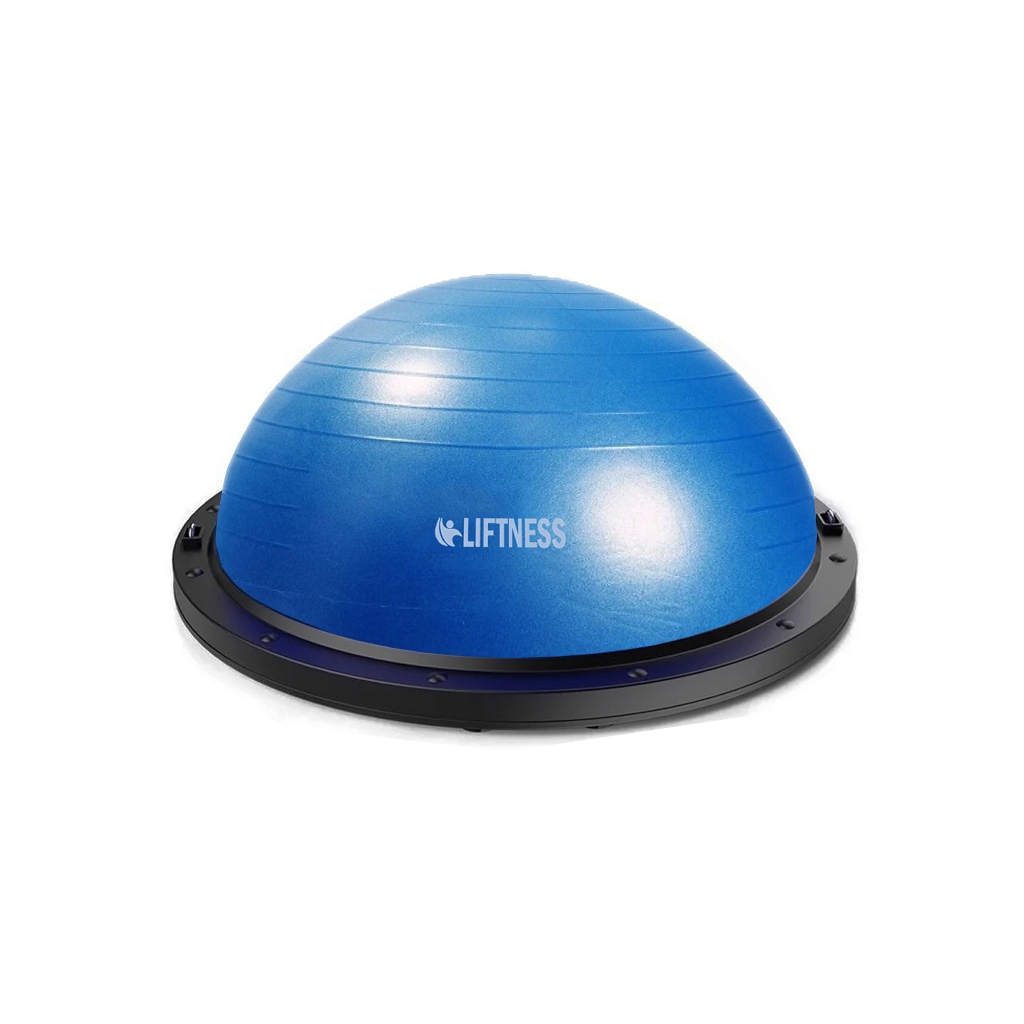 MEIA BOLA GINÁSTICA SUÍÇA COM BOMBA ALÇAS PILATES BOLA BOSSU 58CM AZUL