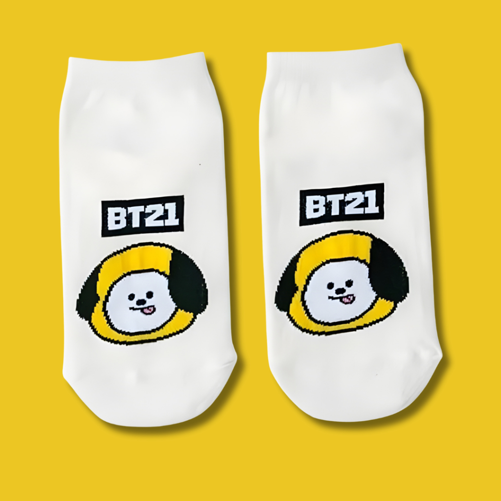 Meia BT21 K-Pop BTS Fofa Confortável Estilo Soquete - Algodão Premium (Tamanho Único - Veste 34 ao 38)