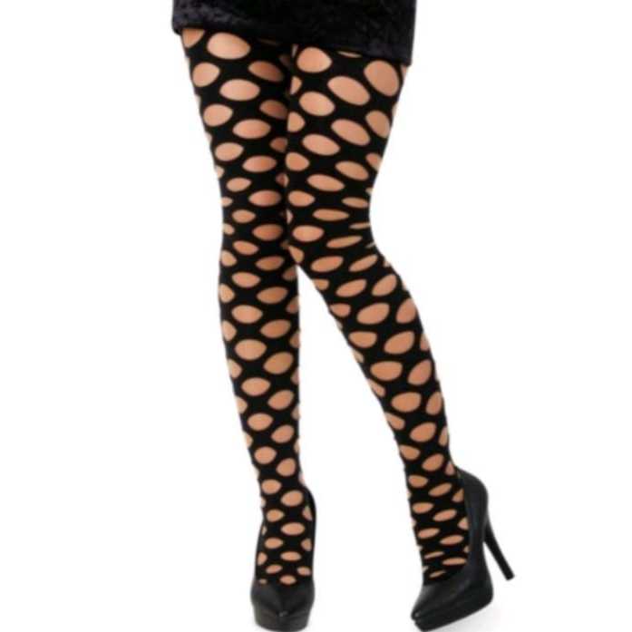 Meia calça preta furada com buracos feminina as meias são feitas com 85% de nylon e 15% poliéster tecido de qualidade e confortável. Ideal para fantasias, eventos cosplay, etc... Não alvejar. Tamanho: Único