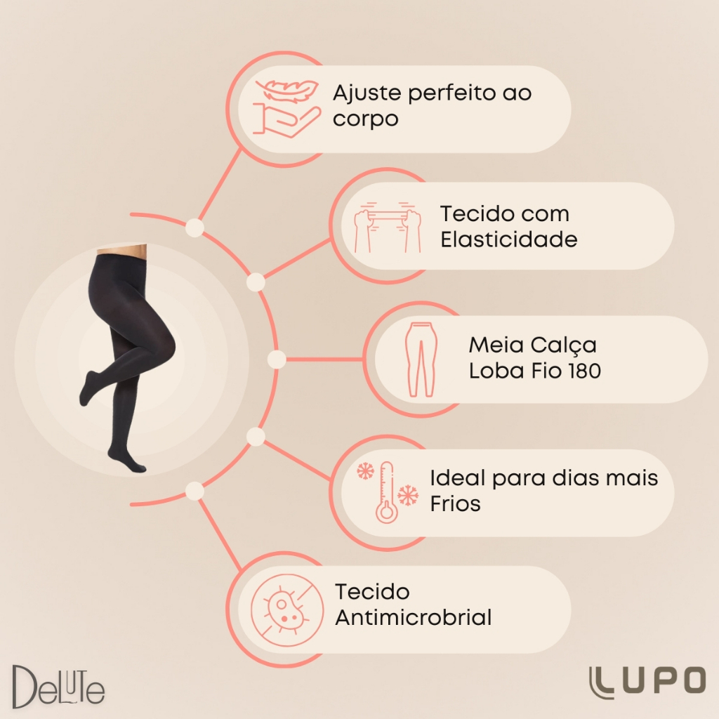 Perfeita para os dias mais frios. Meia fio 180 para te aquecer com conforto e beleza. Pode ser utilizada por baixo de calcas ou com saias e shorts e manter um look elegante. - Meia-calca opaca fio 180. - Sem demarcacao de calca e de ponteira. - Confortavel e bem aderente. - Ideal para o inverno. - Modelo Opaca - Plus Size Composicao: 90% Poliamida e 10% Elastano.