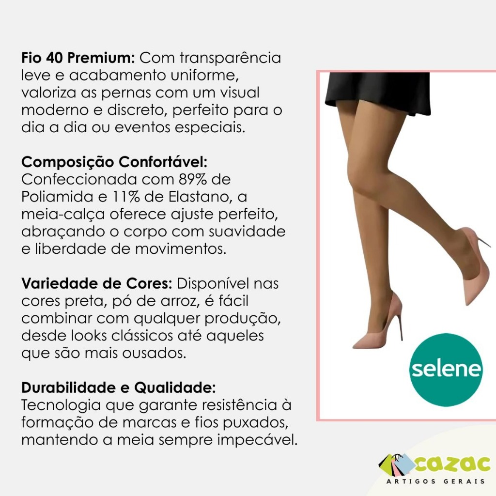Meia Calça Fio 40 Opaca Selene Feminina Adulta Original Preto Pó de Arroz Marrom