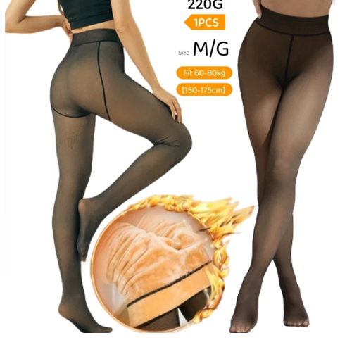 Meia-Calça Térmica Forrada Grosso Translúcida de Lã Feminina Super Elástica Slim 245g