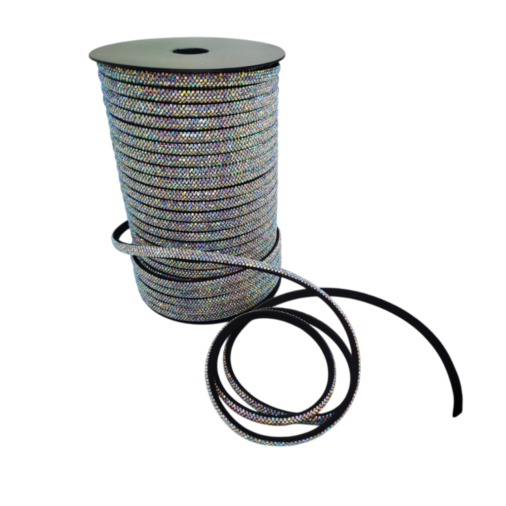 MEIA CANA DE STRASS - LARGURA 6MM - ROLO FECHADO C/ 50 METROS