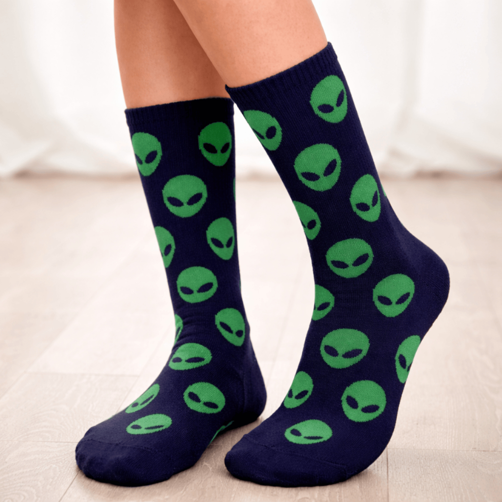 Meia Cano Alto Algodão Estampada ET Alien Divertida Unissex Skate FreeStyle Ciclismo Academia Rock