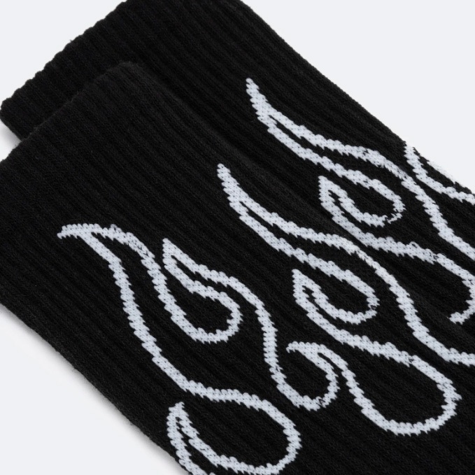 Meia cano alto chamas preta algodão PREMIUM estampa de fogo (ENVIO IMEDIATO)
