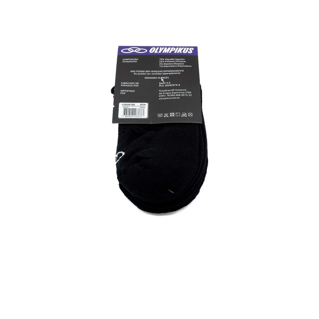 Meia Cano Invisível Olympikus 3 Pares Oiwsa81923 Preto