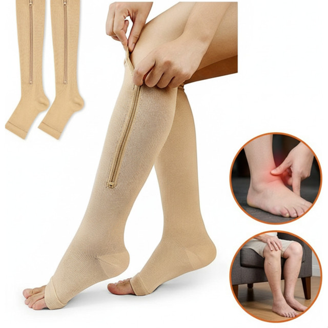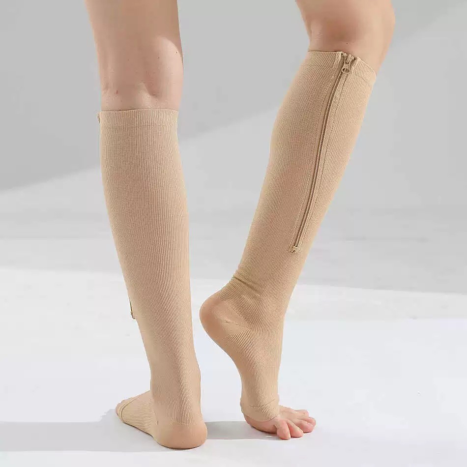 Meia Compressão Ortopédica 3/4 Zíper 20-30 Mmhg Para Varizes Inchaço Trombose e Dores
