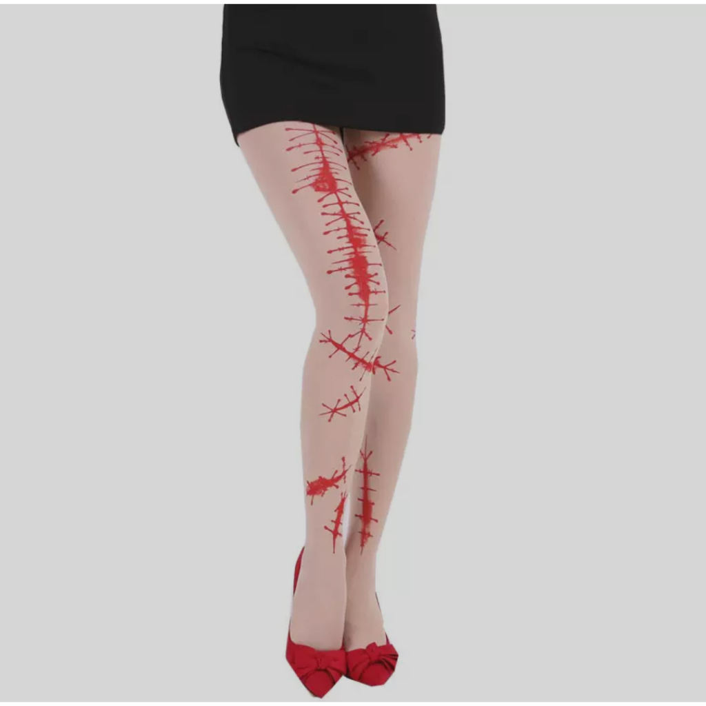 Meia de cano alto listrado 7/8 Listrada anime Festa Fantasia Cosplay Halloween Ferida Cortes Teia Meia Desenhada