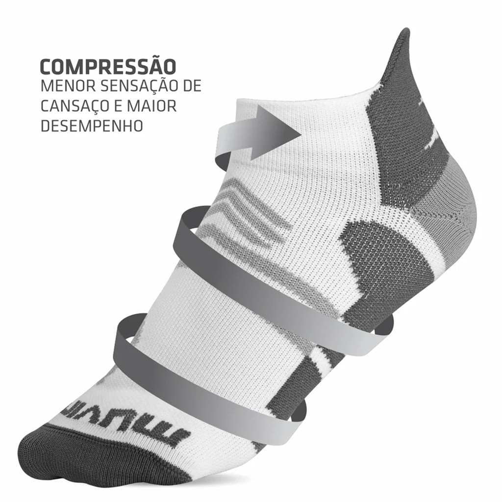 Meia de Compressão Esportiva Muvin Arrow Cano Curto Branco ou Azul Tamanho 34/39 para Corrida Caminhada Ciclismo e Trein