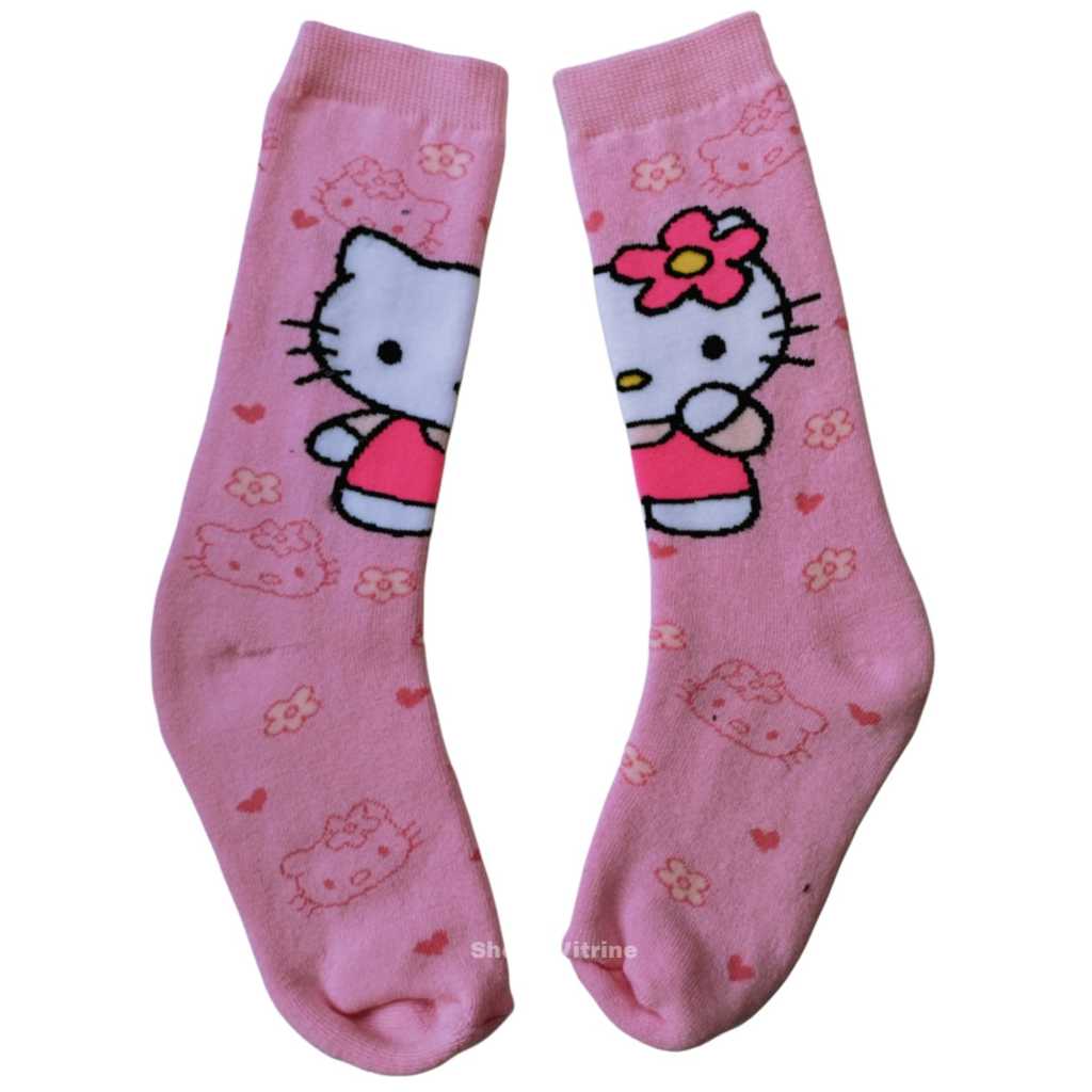 Meia Divertida Infantil Cano Alto em Algodão com Estampa Hello Kitty Rosa