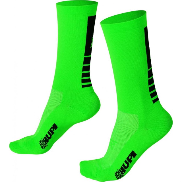 Meia para ciclismo e corrida! Conforto, design, tecnologia e qualidade são adjetivos que descrevem perfeitamente as meias HUPI. Testado e aprovado por atletas de diversas modalidades, a meia HUPI é um item indispensável para você. Praticar esportes com conforto e máximo desempenho é o seu objetivo, e também o nosso. Por isso a meia HUPI apresenta diversos destaques que fazem dela um item fundamental. O material utilizado na fabricação da meia é importado da Alemanha. Os fios de elastano e poliamida formam um conjunto cheio de vantagens. O principal destaque é o conforto, proporcionado pela transpiração que a meia oferece, deixando os pés secos e bem protegidos. A combinação da matéria prima assegura a flexibilidade oferecendo maior liberdade de movimento, sem que a peça laceie, perdendo sustentação. Na região dos dedos e calcanhar, os fios são dispostos em direções diferentes do restante da meia, fazendo com que a modelagem se torne muito mais anatômica, acompanhando o desenho dos pés. Esta característica também prolonga a durabilidade, impedindo o desgaste. Características: * Cano médio de 15 cm; * Composição: 95% Poliamida | 5% Elastano; * Conteúdo: 1 par * Tamanho único: Veste do 36 ao 42 ATENÇÃO: As cores podem apresentar diferenças em tonalidade conforme a calibragem do monitor. Confira mais produtos esportivos que combinam com a meia, viseiras, manguitos, macaquinhos de ciclismo, bermudas de compressão.