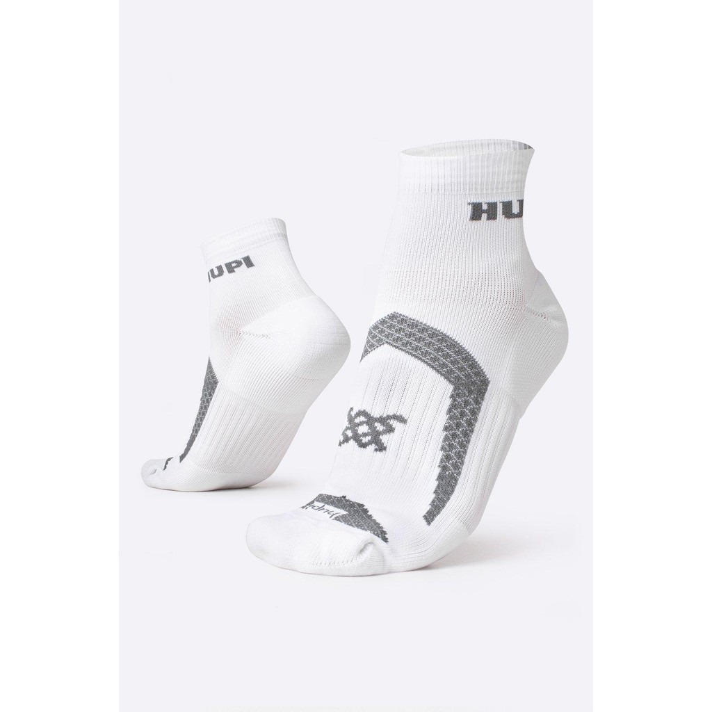 Meia HUPI Running Pro Prime Branco e Cinza - LT para pés menores 34-38