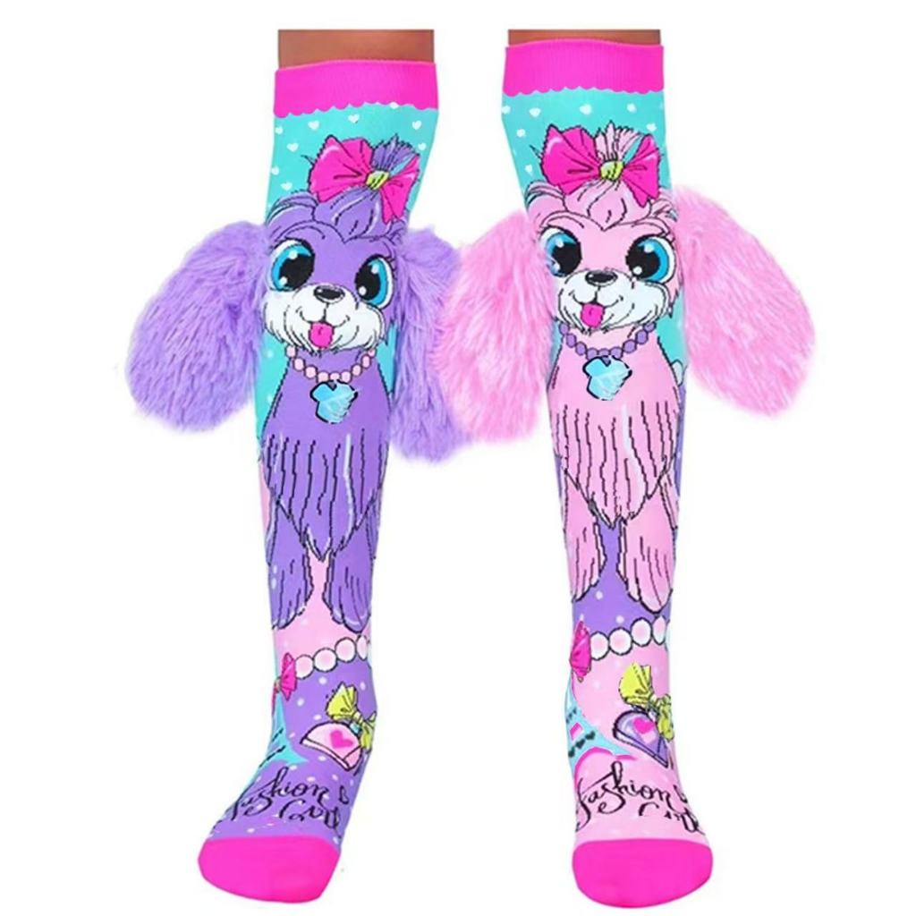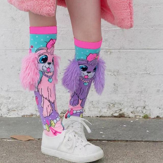 Meia Infantil 3D Divertida Personagem Longa Até o Joelho Menina Festa Colorida