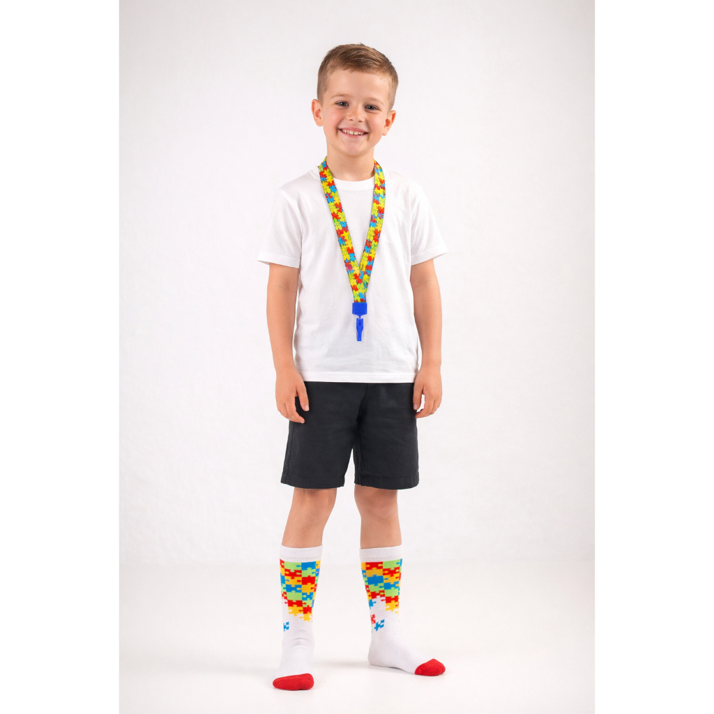 O Kit Infantil Passos pela Inclusão foi desenvolvido especialmente para crianças, com o objetivo de promover conscientização, respeito e inclusão dentro do Transtorno do Espectro Autista (TEA). O conjunto une conforto, praticidade e representatividade por meio do símbolo do quebra-cabeça colorido, reconhecido mundialmente como um ícone da diversidade do espectro autista. O kit é composto por uma meia infantil de cano longo e um cordão de identificação, ambos com estampa de quebra-cabeças coloridos. Essa estampa representa a diversidade, a singularidade e as diferentes formas de perceber e interagir com o mundo. A meia infantil possui cano longo e é confeccionada em material confortável e macio, ideal para o uso diário. Seu design colorido e significativo ajuda a promover a conscientização e valoriza a inclusão desde a infância. O cordão de identificação acompanha a mesma estampa temática e conta com fecho resistente, sendo ideal para uso com crachás, cartões de identificação ou itens escolares. Mais do que um conjunto de produtos, o Kit Passos pela Inclusão carrega uma mensagem importante sobre respeito às diferenças, empatia e valorização da diversidade. É uma opção ideal para uso no ambiente escolar, em atividades de conscientização ou como presente significativo para crianças e famílias que apoiam a inclusão. Composição Meia: 70% algodão, 28 % poliamida, 02% elastano Composição Cordão: 100% poliéster Tamanho Único- Veste do 25 ao 33