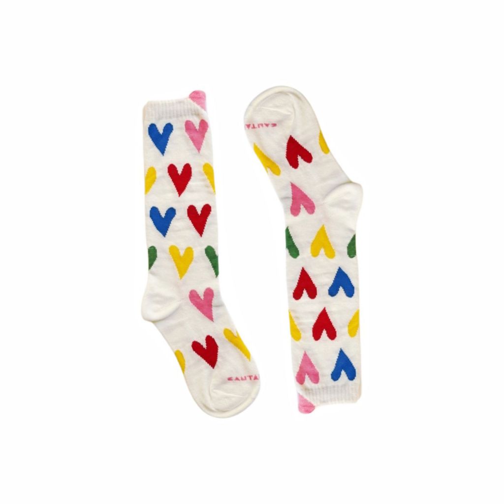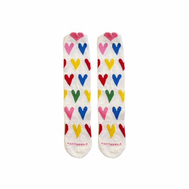 Meia Infantil Corações Coloridos — Meia Cano Alto Colorida para Criança
