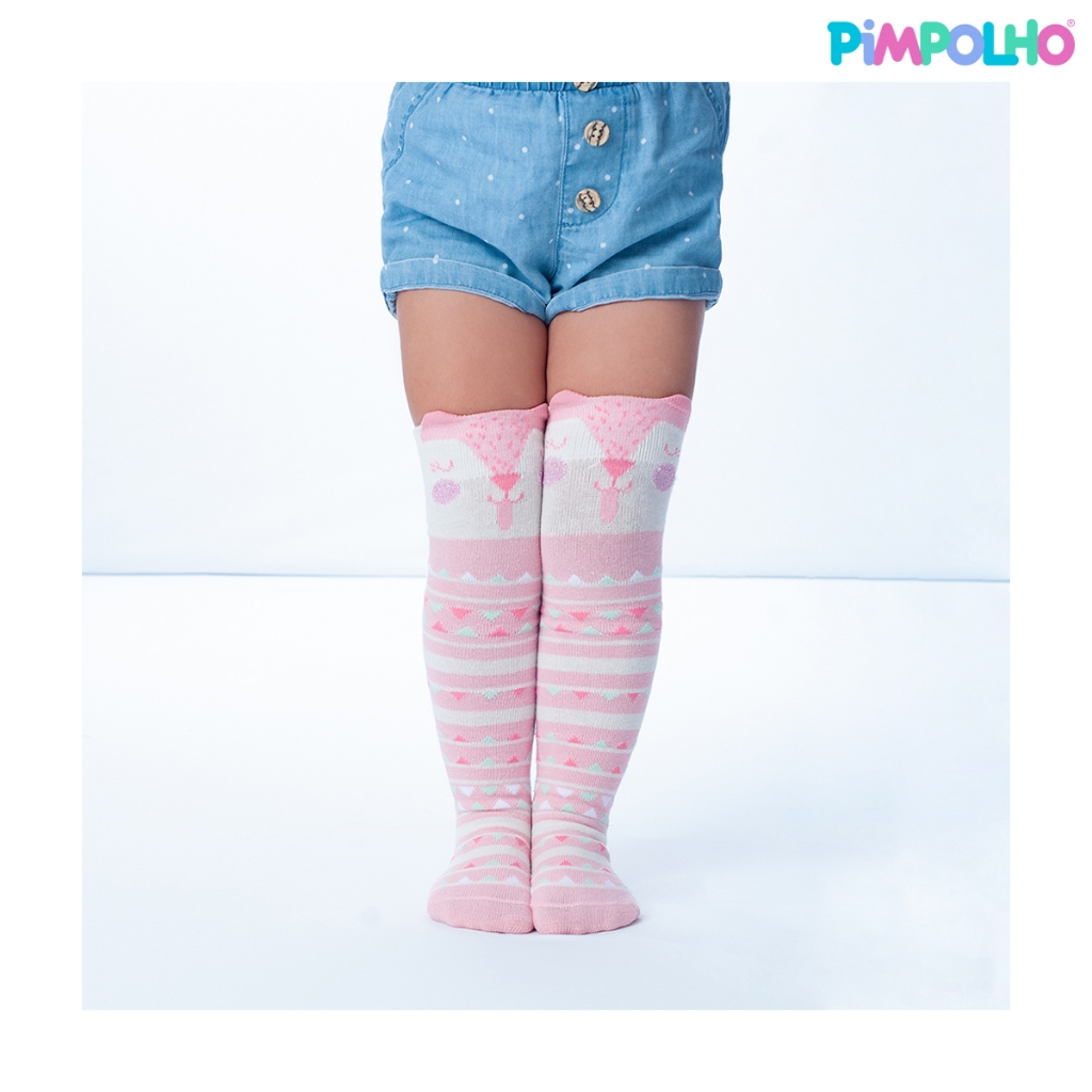 Meia Infantil Menina Tamanho 21-25 Pimpolho Meia Cano Alto Joelho 5/8 Bebê 1 a 3 Anos