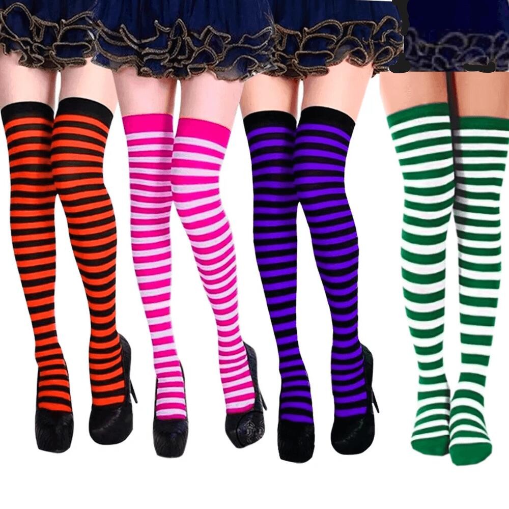 Meia Listrada – Cores Variadas (Laranja, Roxo, Pink E Verde)