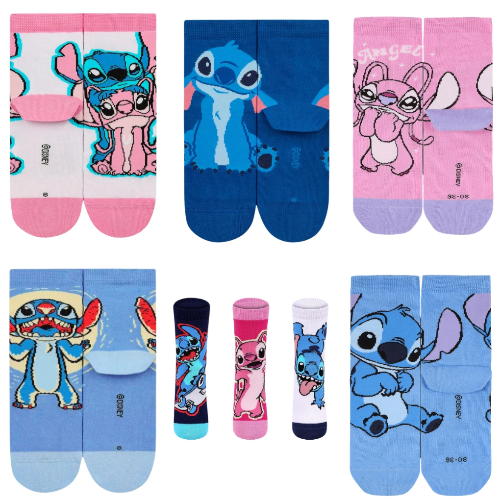 Meia Lupo Lilo & Stitch Disney Cano Médio Infantil Divertida Original