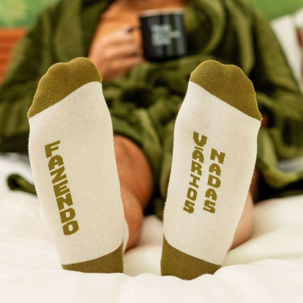 Nossa Meia Pais Não Perturbe chegou trazendo conforto e bastante estilo para os pés! Toda em off-white e com detalhes em verde-militar, ela vem em uma embalagem que imita um aviso de porta com a frase: "Não perturbe". Sendo ideal para você presentear, arrasar nos lookinhos do dia a dia ou simplesmente, curtir um momento relax fazendo "vários nadas". Contém 1 par de meias. Não podem ser vendidas separadamente. Tamanho: 34 a 44. Composição: 70% algodão, 28% poliéster e 2% elastano. Validade indeterminada.