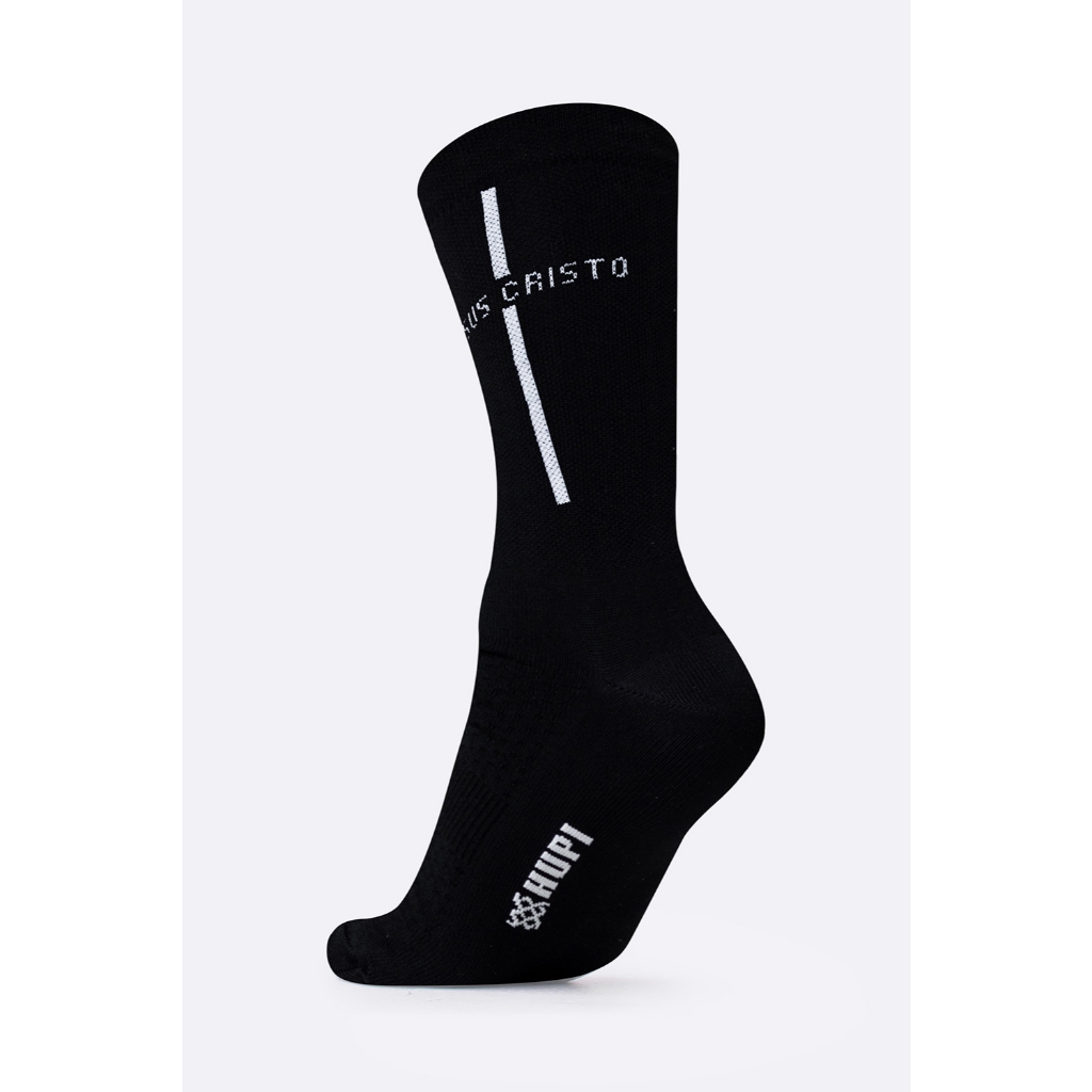 Meia para Corrida Ciclismo HUPI Jesus Cristo 1 Par, Cor Preto/Branco, Tamanho Normal 36-42