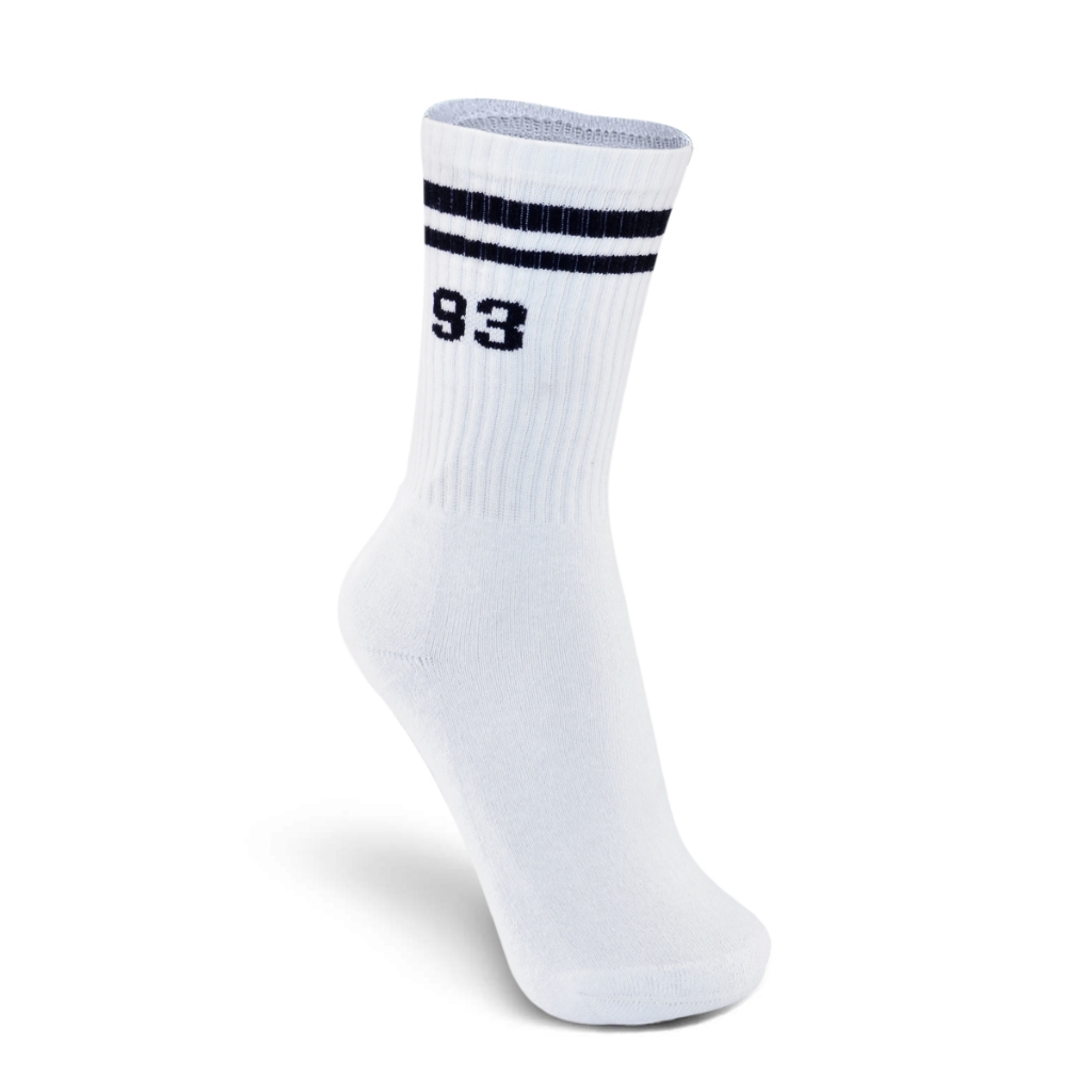 Meia QIX International Cano Alto QIX 93 Preto Branco Algodão Esportiva
