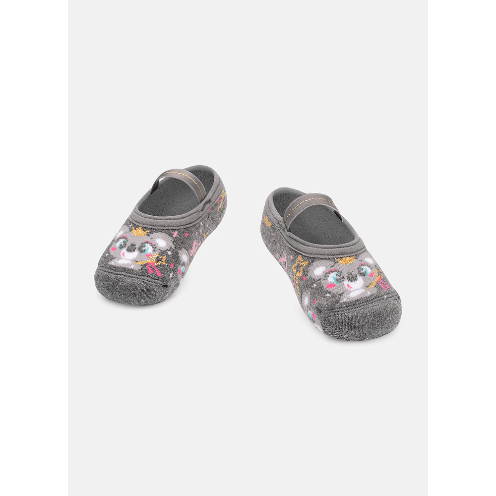 Meia com modelagem de sapatilha com tema stitch. Produzida com algodão macio. Possui acabamento em viés e elástico confortável. Solado com antiderrapante, sem aroma. Indicação de uso: Ideal para praticar exercícios e brincadeiras sem o uso de calçado e no dia a dia em casa. Instruções de Lavagem: Lavagem a mão Não alvejar Instruções de Conservação: Não secar em tambor Não passar Não limpar a seco