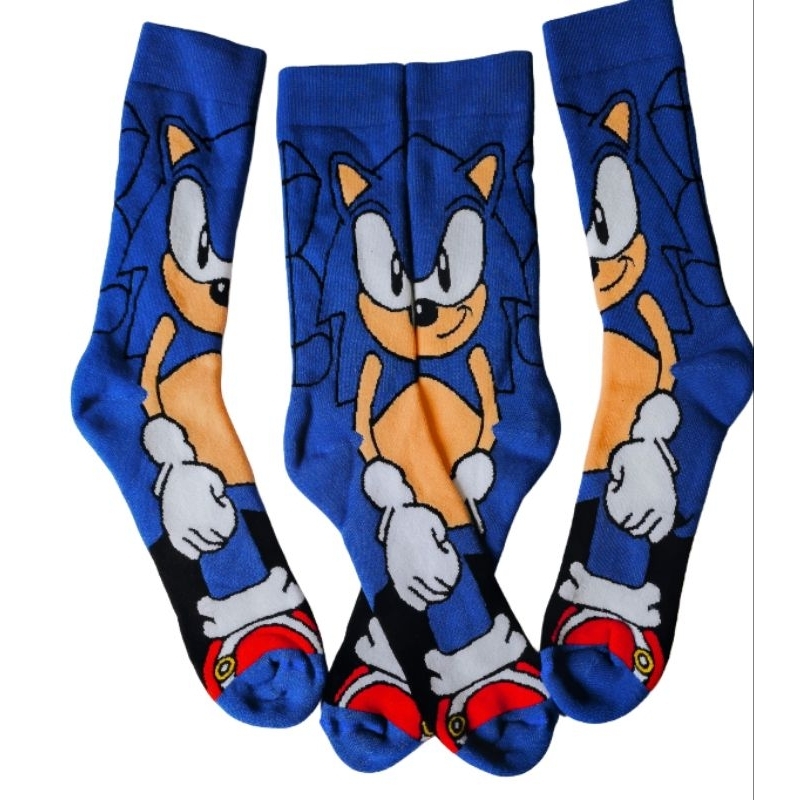 meia Sonic azul adulto cano alto algodão pronta entrega