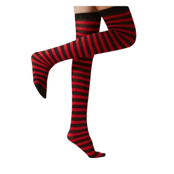 Meia Calça 7/8 até o Joelho Vermelha e Preto Listrada 100% poliéster Contem um par de Meia por embalagem Tamanho Unico Veste Até o 42 Ideal para Festa Cosplay Carnaval Fantasias