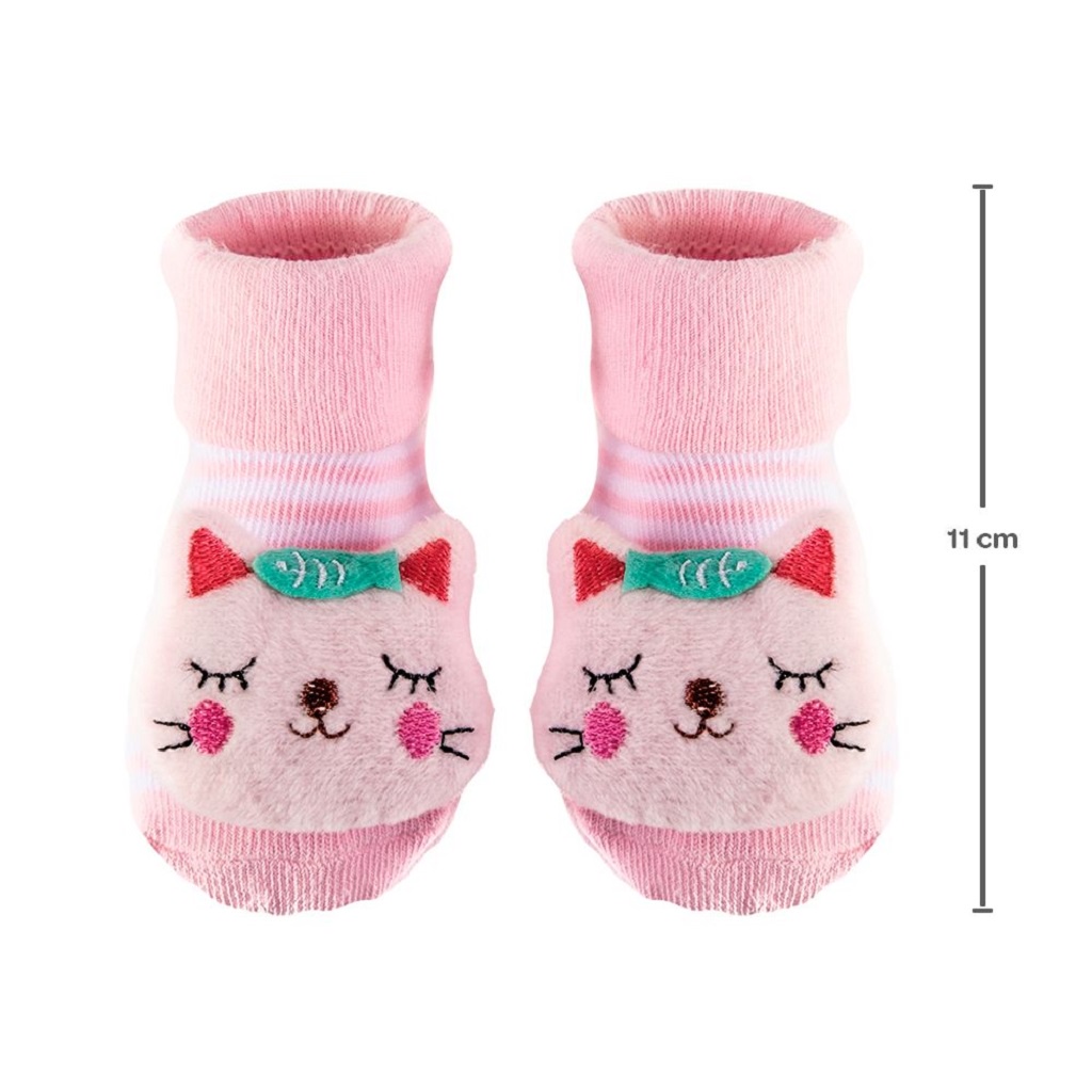 Meias Antiderrapante Com Chocalho Gatinho Rosa 12729 Buba