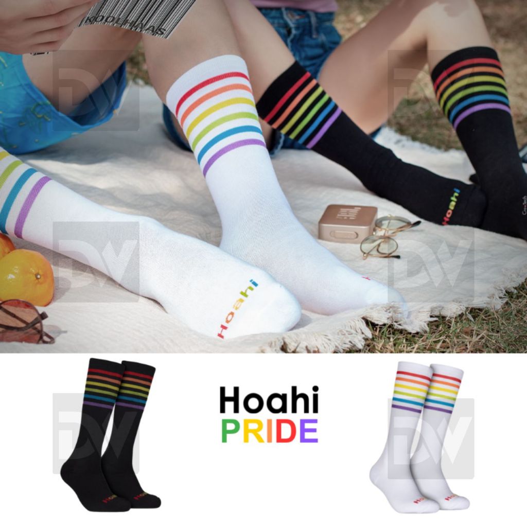 Meias Cano Longo com Listras Coloridas Hoahi Pride Style Coreana Branca