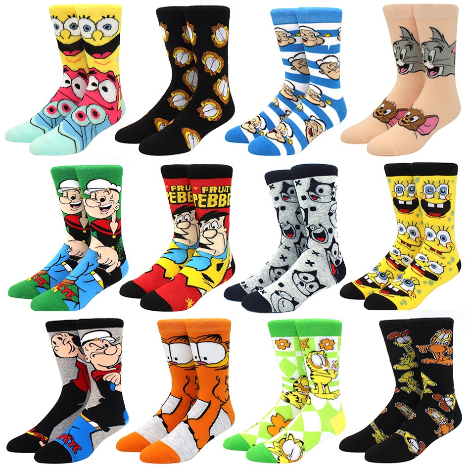 Meias Criativas Engraçadas Homens Mulheres Novidade Filmes De Desenho Animado De anime Gato Skate hip hop
