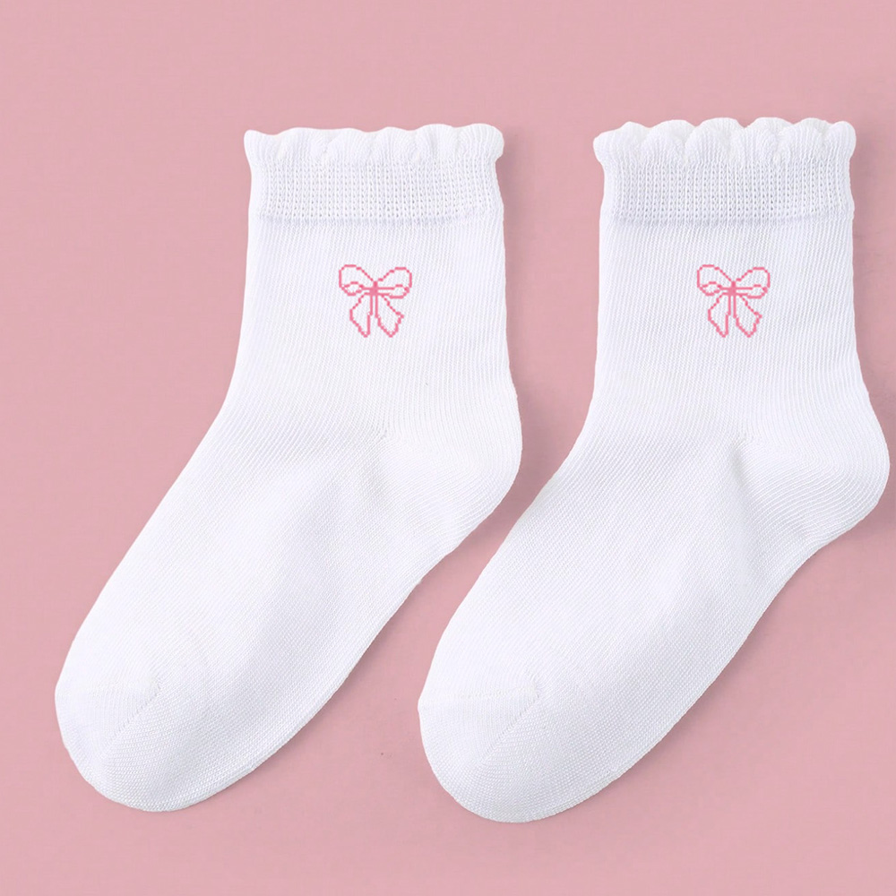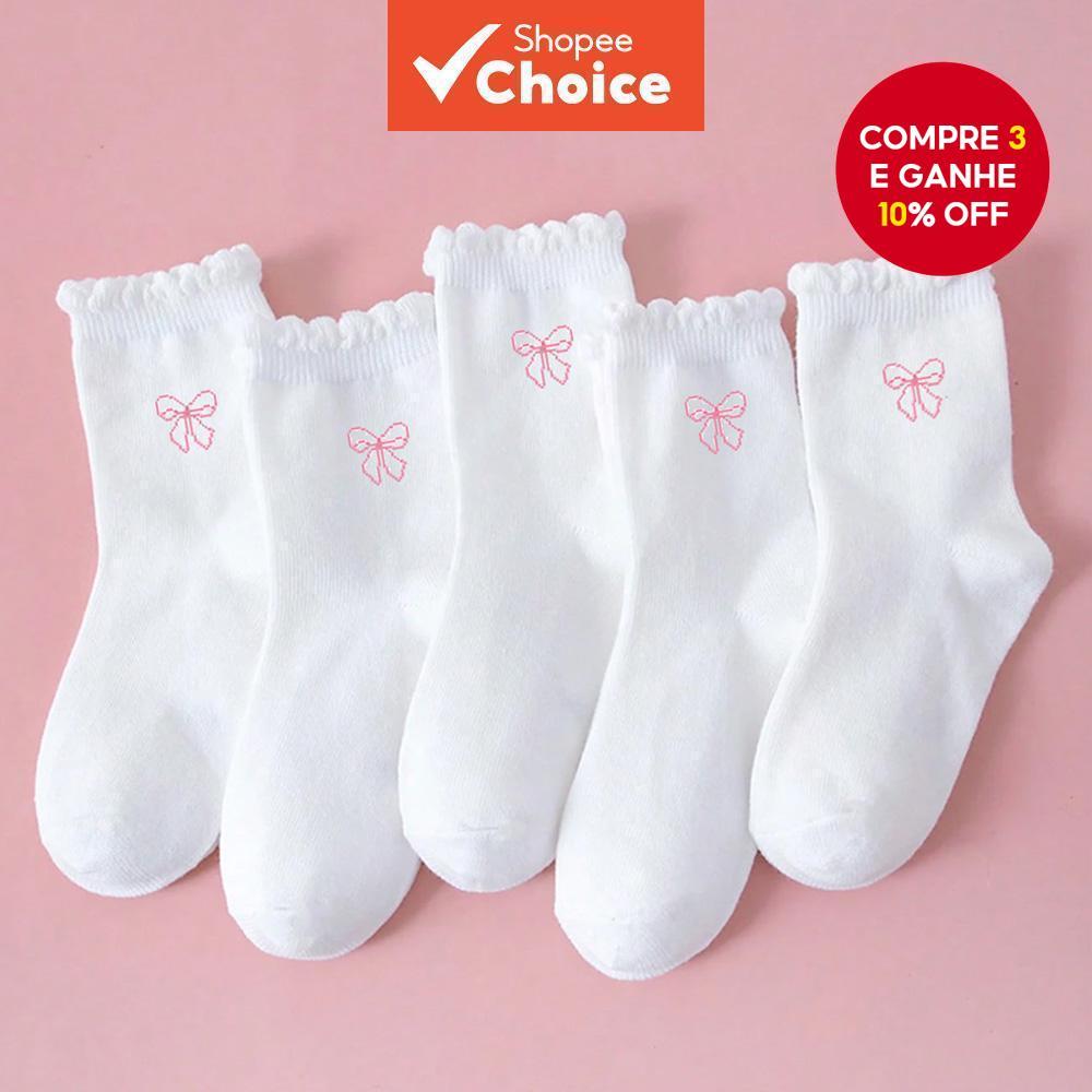 Meias Femininas com Laço Branco, Confortáveis, Meias de Tornozelo, 5 Pares, Para Todas as Estações, Para Voltar às