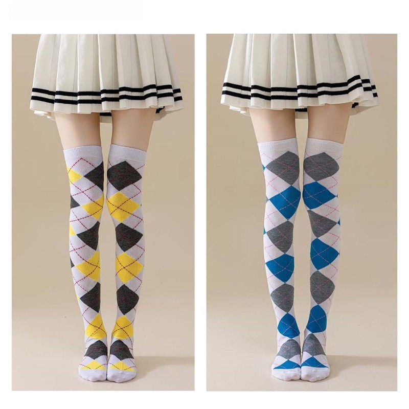 Meias Femininas Xadrez Engrossadas Moda Sobre O Joelho Estudante Festa Dança Quentes Longas