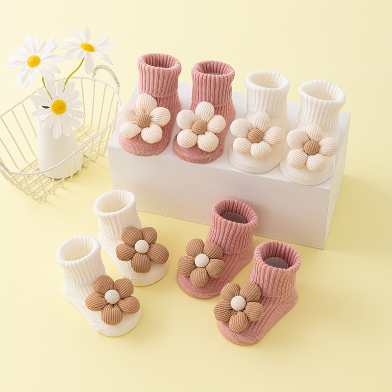 Meias Para Bebês Recém-Nascidos , De Girassol De Cano Médio Com Punho De Gel Andador De 0 A 1 Ano , 1 Par