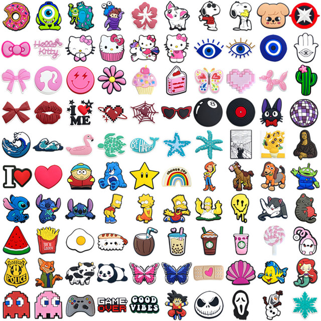 MEIDJ Encantos Para Sapatos 100 Decorações Animais De Desenho Animado Flores Oceano Comida Olho Padrão Acessórios
