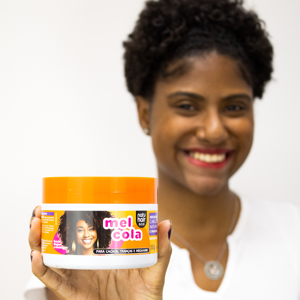 ► Mel Cola NatuHair ► PARA CACHOS, TRANÇAS E MEGA-HAIR -- fixação, fitagem e modelagem. --- ► INDICADO PARA CABELOS NATURAIS E ORGÂNICOS Tenha cachos como sempre sonhou com Mel Cola NatuHair SOS. Criado especialmente para cabelos naturais e orgânicos, incluindo tranças e mega-hair. Nossa fórmula exclusiva com Mel Vegetal, hidrata, modela, fixa e define seus cachos de forma impecável. Modo de usar: Com os cabelos limpos e úmidos, coloque de 30g a 50g do Mel Cola NatuHair SOS na palma das mãos fazendo movimentos amassando os fios das pontas percorrendo todo o comprimento, preservando a raiz. Para um melhor resultado enluve mecha a mecha. Fitagem: Com os cabelos limpos e úmidos, aplique de 30g a 50g do Mel Cola NatuHair SOS mecha a mecha, a quantidade a ser aplicada pode variar conforme o comprimento e volume do cabelo. Para definir os cachos, flexione os cabelos do sentido das pontas até a raiz, amassando-os suavemente. Tranças: Em cabelos limpos e secos, separe o cabelo em seções de acordo com o modelo de trança desejado. Aplique de 30g a 50g (ajuste conforme o comprimento dos fios) do Mel Cola NatuHair SOS em cada seção antes de trançar. Após terminar todas as tranças, permita que o cabelo seque naturalmente ou use um difusor para acelerar o processo.
