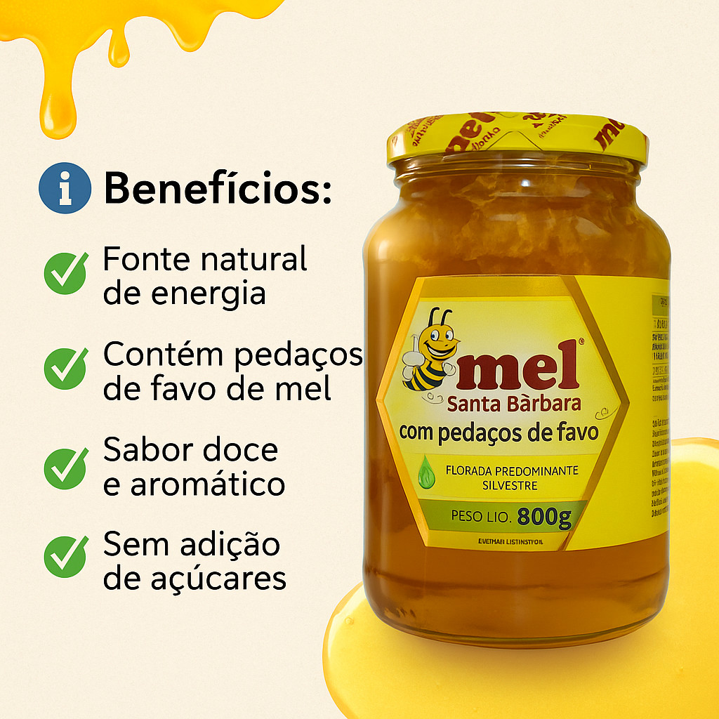 Mel com Favo Santa Bárbara 800g | Puro, Natural e Artesanal – Florada Silvestre