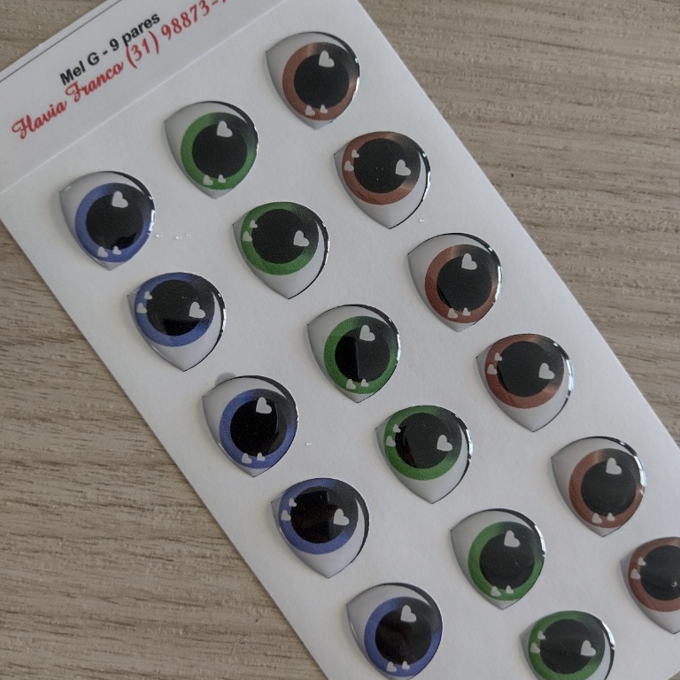 MEL G - 9 PARES - Cartela Olhinhos Olhos Resinados Biscuit E Eva