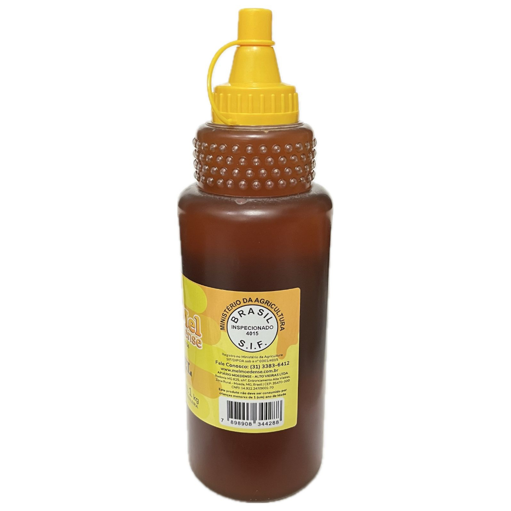 O mel, especialidade da Moedense, é um produto natural elaborado pelas abelhas a partir do néctar das flores. A sua facilidade digestiva faz com que se transforme imediatamente em energia, pois a dextrose e a levulose do mel passam diretamente ao sangue poucos minutos após a ingestão. A classificação, a coloração a o sabor dos méis é determinada pelo néctar da planta que lhe deu origem. Os mais claros têm paladar mais suave e menos sais minerais. Os mais escuros são mais nutritivos, sendo que seu paladar e ação laxativa são mais acentuados e possuem maior quantidade de sais minerais. Uma das garantias da pureza do mel e a cristalização. Somente o mel puro cristaliza. Há méis que cristalizam mais depressa, dependendo do néctar utilizado. Ressalta-se que pode-se descristianizar o mel aquecendo-o em banho Maria. Flora não especificada. Atenção: Mel tende a cristalizar, é característica normal do produto. Validade: 04/2027