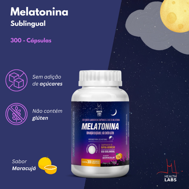 | Melatonina Sublingual Sabor Maracujá 300 Comprimidos - Health Labs | R$ 28,89 | 18% | 4.9/5 | 426 |