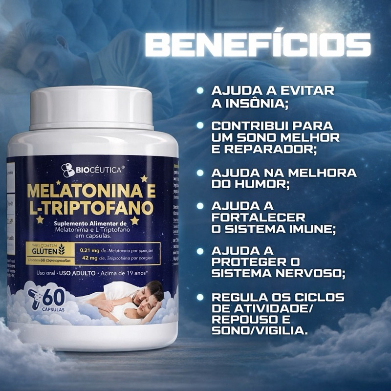 Melatonina e Triptofano 60 Cápsulas BioCêutica - Sono Profundo, Relaxamento, Disposição ao Acordar