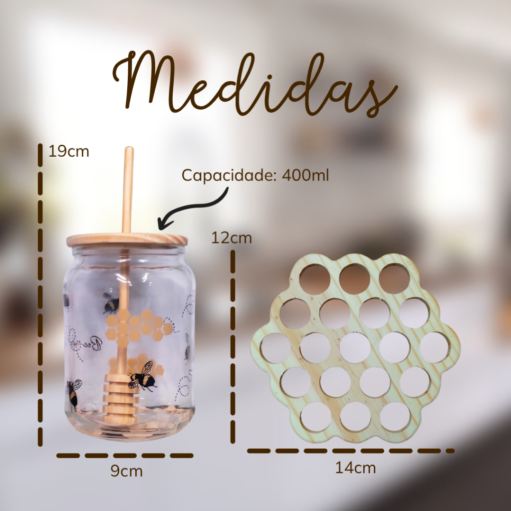 | Meleira Decorada de Vidro 400ml com Colher Madeira Tampa e Base Pin... este produto | R$ 53,53 | 5% | 4.8/5 | 3 |
