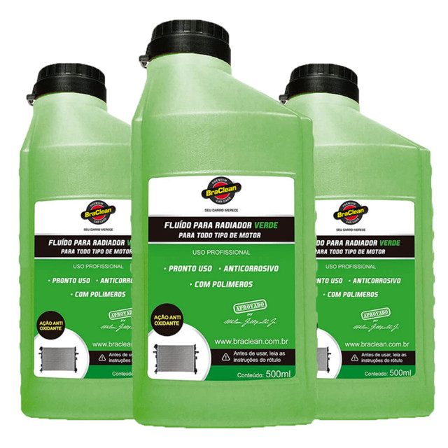 Melhor Kit 3 Fluido Radiador Pronto Uso 500ml Verde para sistema de arrefecimento veicular BraClean