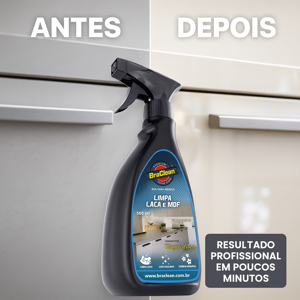 O Limpa Laca e MDF 500ml BraClean foi desenvolvido para limpeza de móveis e superfícies com acabamento em laca, MDF e laminados semelhantes, ajudando a remover sujeira leve, marcas de dedos e poeira sem agredir o acabamento. Ideal para salas, quartos, escritórios, racks, armários e móveis planejados, contribui para manter o aspecto de novo por mais tempo. BENEFÍCIOS • Ajuda a limpar superfícies de laca e MDF sem abrasividade excessiva. • Remove poeira, marcas leves e sujeiras do dia a dia. • Contribui para manter o brilho e a aparência original do móvel. • Uso prático em frasco de 500ml para aplicação direta com pano. • Indicado para uso doméstico e em escritórios. INFORMAÇÕES TÉCNICAS • Marca: BraClean • Produto: Limpa Laca e MDF • Volume: 500 ml • Categoria: limpador para móveis e superfícies delicadas • Indicação: móveis em MDF, laca e laminados compatíveis • Tipo: limpador pronto para uso • Conteúdo da embalagem: 3 frascos Limpa Laca e MDF BraClean 500ml COMO USAR Remova o excesso de poeira com pano seco e macio. Aplique o produto diretamente no pano limpo ou em pequena quantidade na superfície. Espalhe de maneira suave, em movimentos lineares. Se necessário, finalize com pano seco para uniformizar. Evite excesso de produto, principalmente em locais com emendas e bordas. Em superfícies sensíveis, faça teste em área discreta antes. FAQ Posso usar em madeira crua? Não é o ideal. O produto foi pensado para superfícies acabadas (laca, MDF, laminados). Substitui lustra-móveis? É um limpador. Alguns lustra-móveis têm outra função de realce. Use conforme o acabamento desejado. Remove riscos? Não remove riscos na pintura ou laca, apenas limpa a superfície. PROVA DE CONFIANÇA – POR QUE COMPRAR O LIMPA LACA E MDF 500ml BRACLEAN • Produto específico para móveis com acabamento delicado. • Ajuda a conservar o visual de móveis planejados e superfícies de MDF. • Fácil de usar na rotina de limpeza doméstica.