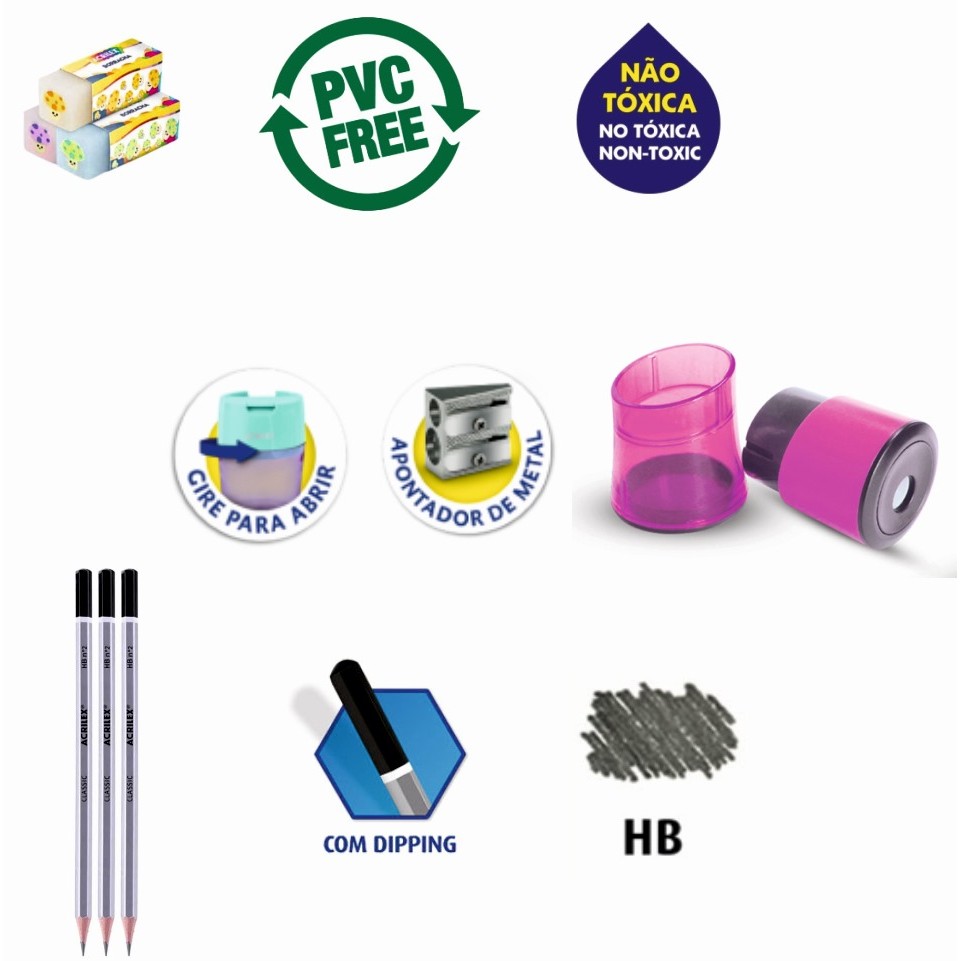 Volta às Aulas com Acrilex! Prepare-se para um ano letivo cheio de criatividade com os produtos Acrilex! Confira nossa linha completa: Lápis de Cor 12 Cores- Opções em cores metálicas, neon e clássicas. Deixe seus desenhos com muito mais vida! Canetinhas Hidrográficas 12 Cores- Ideais para colorir e criar, com ponta resistente e cores vibrantes. Tempera Guache 12 Cores - Para pintar e soltar a imaginação com diversas cores em potes práticos. Big Giz de Cera Triangular 12 Cores - Perfeito para as mãos pequenas, proporcionando firmeza e conforto ao colorir. Massinha de Modelar Soft 12 Cores - Super macia e fácil de modelar, para criar o que a imaginação mandar! Art Kids Kimeleka Slime (não agrega valor ao kit)- Uma massinha divertida e lavável que as crianças adoram! Apontador e Borracha 3 de cada - Essenciais para um estojo completo! Todos os produtos Acrilex são feitos para garantir diversão e aprendizado com segurança e qualidade! Compre agora e leve a criatividade para a escola!