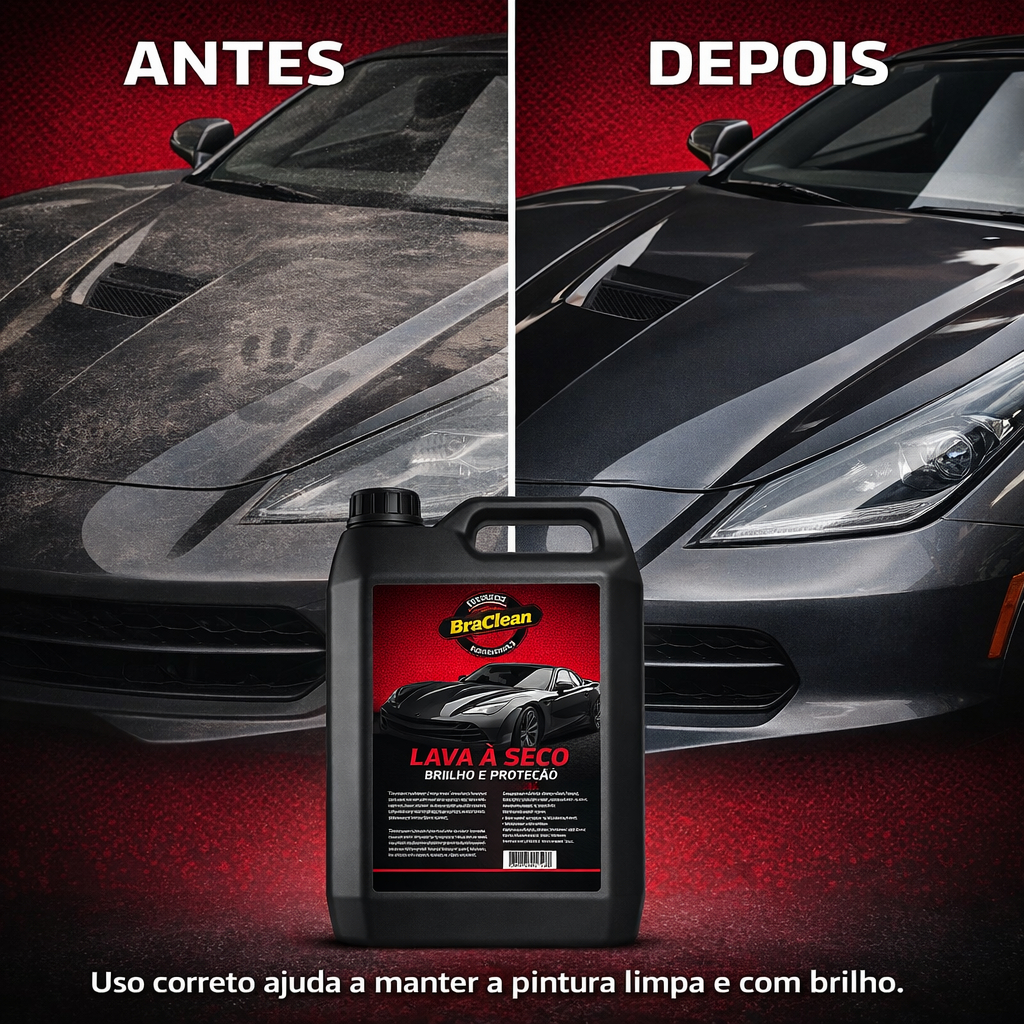 O Lava À Seco 5 Litros BraClean é a versão profissional do lava à seco, ideal para lava-rápidos, estéticas automotivas e frotas. Permite realizar limpezas externas eficientes sem uso de mangueira, ajudando a economizar água e tempo, quando aplicado em veículos com sujeira leve a moderada. BENEFÍCIOS • Indicado para alto volume de lavagens sem água. • Ajuda a manter veículos limpos em locais com restrição de uso de água. • Pode ser fracionado em frascos menores com borrifador. • Contribui para economia de água em lava-rápidos e empresas. • Excelente custo-benefício pela embalagem de 5 litros. INFORMAÇÕES TÉCNICAS • Marca: BraClean • Produto: Lava À Seco • Volume: 5 litros • Categoria: limpador automotivo sem enxágue • Indicação: pintura, partes externas e superfícies compatíveis • Uso: profissional e automotivo • Conteúdo da embalagem: 1 galão Lava À Seco BraClean 5 litros COMO USAR Transfira o produto para frascos com gatilho de pulverização. Trabalhe sempre à sombra e com lataria fria. Borrife em pequenas áreas, aguardando alguns instantes. Remova a sujeira com pano de microfibra limpo, em movimentos suaves. Dê acabamento com outro pano seco e limpo. Evite utilizar em veículos com barro pesado ou areia aderida. FAQ Pode ser diluído? Verifique se o rótulo permite alguma diluição. Em geral, lava à seco é usado pronto. Serve para motos e frotas? Sim, pode ser usado em diversos veículos, respeitando as orientações de uso. POR QUE COMPRAR O LAVA À SECO 5 LITROS BRACLEAN • Ideal para negócios que desejam oferecer lavagem ecológica. • Alto rendimento, permitindo atender muitos veículos com um único galão. • Ajuda a padronizar o processo de lavagem a seco com qualidade.